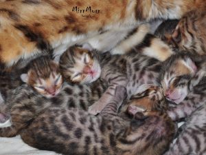 Amióta az eszemet tudom, rajongok a természetért, a vadállatokért és persze a macskákért. Így, amikor kislányom – aki azóta már nagylány lett – közölte velem, hogy macskatenyésztő szeretne lenni, nem volt kérdés, hogy a bengáli fajtát választjuk. 🙂 Mivel évekig dolgoztam állatkertben, nagyon fontosnak tartom, hogy macskáink a lehető legtermészetesebb környezetben, teljes életet élhessenek. Ezért a házunkhoz kifutókat építettünk, ahová, ha a mini párducoknak úgy tartja kedvük, bármikor kimehetnek nézelődni, napozni. Tenyészállatainkat szinte kizárólag nyers hússal etetjük, ezzel is biztosítva egészségüket, tökéletes kondíciójukat. A MirrMurr bengáli macska tenyészet elsődleges célja, hogy a fajtára jellemző vad küllemet megőrizzük. Mivel tenyészetünk nem túl nagy, pici cicáinkkal gyakorlatilag az első pillanattól kezdve együtt élünk. Gyakran vesszük kézbe és simogatjuk őket, rendszeresen játszunk velük.